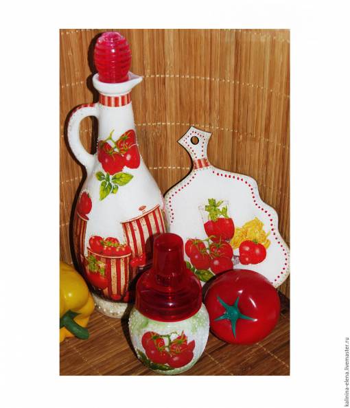 Очень сочный и вкусный комплект для кухни "Томаты". Состоит из трех предметов: